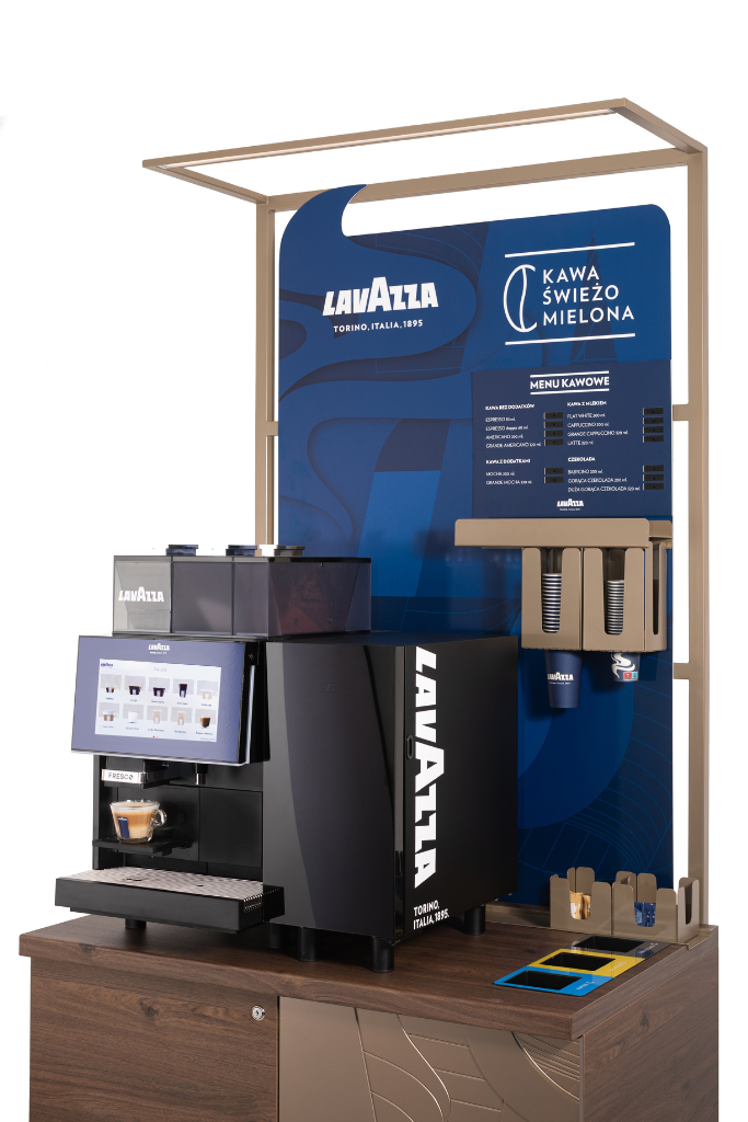 - profesjonalny ekspres do kawy z logo Lavazza (wybierz ekspres z oferty abonamentowej – więcej TUTAJ)
